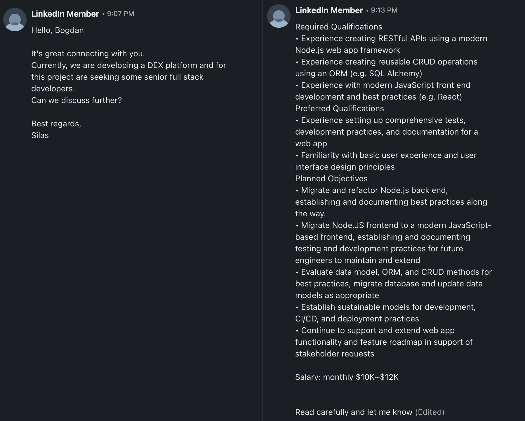 LinkedIn’s job market is crawling with scammers peddling empty dreams, and I’m here to warn you about it. These people are relentless, and I’ve gotten a flood of these fake job pitches myself.
